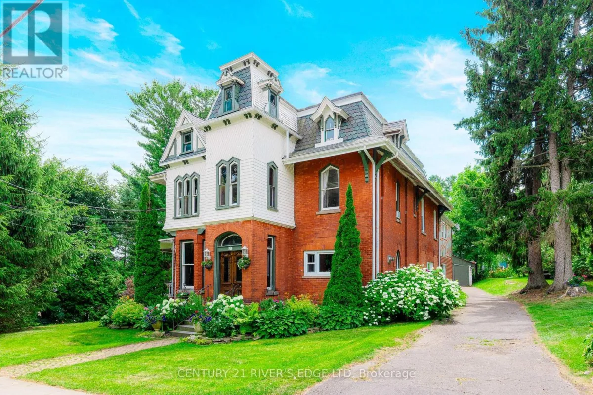 TAYLOR-PHILIPS HOUSE | 20 Sherwood St. | c.1882. A Rare Piece of Architectural History. Welcome to the Taylor-Philips House, a captivating Victorian-era residence built circa 1882, nestled in the heart of one of the city's most storied neighborhoods. Located at 20 Sherwood Street, this timeless home offers a rare opportunity to own a piece of local heritage thoughtfully preserved, yet tastefully updated for modern living. Steeped in character, the home showcases hallmark period details: ornate millwork, high ceilings, original hardwood floors, and a grand front porch framed by gingerbread trim. Sunlight streams through oversized windows, illuminating the graceful flow between parlors, a formal dining room, and an updated kitchen that balances vintage charm with contemporary function. With generous living space across multiple levels, the home features 5 bedrooms, multiple fireplaces, and a private garden retreat with a stunning verandah anchored with stone based pillars and cedar ceilings, ideal for quiet mornings or evening entertaining. Every corner tells a story, from the hand-carved banisters to the preserved architectural flourishes that echo its 19th-century roots. Tucked away on the upper level at the rear of the property is an accessory studio apartment accessed by a separate staircase from the north side entry -- perfect for guests, a care-taker, extended family, or potential rental income. A large, unfinished attic provides an exciting opportunity to create even more living area ideal for an additional suite, studio, or loft. A single-car detached garage and seasonal views of the St. Lawrence River add even more appeal to this unique offering. Whether you're a preservation enthusiast or simply seeking a home with true soul, the Taylor-Philips House invites you to be part of its ongoing legacy. Historic, elegant and enduring. Now is your chance to become a chapter in history at 20 Sherwood Street in downtown Brockville.